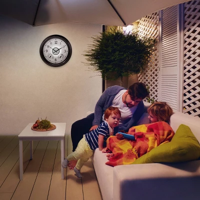 AcuRite’s 24-inch Illuminated Outdoor Clock with Thermometer and Humidity Sensor delivers beauty and function, day or night. It features an integrated light sensor that automatically activates a warm, ambient backlight during dark conditions. Durable all-weather construction makes this a functional addition to any patio or garden. Stylish design makes it perfect for indoor décors as well. Also features a reliable quartz crystal movement, accurate temperature and humidity readings, and easy-to-read numbers. Limited 1-year warranty. It’s more than accurate, it’s AcuRite.