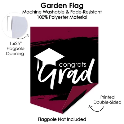 Maroon Grad – Best is Yet to Come Garden Flag INCLUDES 1 polyester fabric material garden flag in a vertical pennant shape that measures 12 inches wide and 15.25 inches tall. (Flagpole Not Included) Cute Decor: Welcome houseguests with this weather resistant Burgundy Grad – Best is Yet to Come Garden Flag. Printed double-sided, Congrats Grad – Graduation Party Garden Flag looks great placed close to your home, added to flowerpots, or displayed next to your favorite garden gnome decoration. Yard & Home: Maroon Grad – Best is Yet to Come Garden Flag is machine washable and fade-resistant, allowing you to easily display in your outdoor lawn or inside your home for a fun Graduation Party decoration. The small and cute size helps make this a great housewarming gift for a loved one’s deck, patio, porch, or yard. High-Quality Supply: Burgundy Grad – Best is Yet to Come Garden Flag is professionally printed double-sided on 100% polyester material. With a 1.625-inch flagpole opening, easily & quickly display the vibrant Congrats Grad Garden Flag. Please Note: Flagpole Not Included – will fit most standard-sized garden flag stand flagpoles. Printed In The USA: Maroon Grad – Best is Yet to Come outdoor lawn and home Garden Flag is designed and manufactured at our Wisconsin facility using materials that are Printed in the USA – Fabric Flag Made in China.