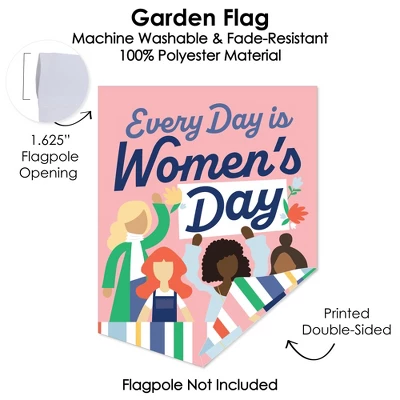 Women’s Day Garden Flag INCLUDES 1 polyester fabric material garden flag in a vertical pennant shape that measures 12 inches wide and 15.25 inches tall. (Flagpole Not Included) Cute Decor: Welcome houseguests with this weather resistant Women’s Day Garden Flag. Printed double-sided, Girl Power – Women’s Day Party Garden Flag looks great placed close to your home, added to flowerpots, or displayed next to your favorite garden gnome decoration. Yard & Home: Women’s Day Garden Flag is machine washable and fade-resistant, allowing you to easily display in your outdoor lawn or inside your home for a fun Women’s Day Party decoration. The small and cute size helps make this a great housewarming gift for a loved one’s deck, patio, porch, or yard. High-Quality Supply: Woman Empowerment Garden Flag is professionally printed double-sided on 100% polyester material. With a 1.625-inch flagpole opening, easily & quickly display the vibrant Women’s Day Garden Flag. Please Note: Flagpole Not Included – will fit most standard-sized garden flag stand flagpoles. Printed In The USA: Women’s Day outdoor lawn and home Garden Flag is designed and manufactured at our Wisconsin facility using materials that are Printed in the USA – Fabric Flag Made in China.
