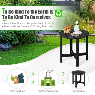 - Born for Outdoors: Vary from easy-to-crack wood material and easy-to-rust metal material, this patio side table is made of all-weather HDPE material, which takes advantage of being fade-resistant, sun-protective and waterproof, perfectly standing to the outdoor elements.