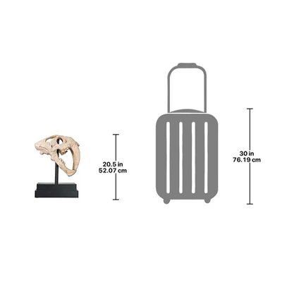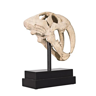 You don’t unearth this kind of archeological find every day! Considering that this Pleistocene predator became extinct over 10,000 years ago, we’re quite privileged to have a museum-quality replica of the original skull excavated at the famous La Brea Tar Pits. Our specimen is cast in quality designer resin, finished to replicate ancient fossilized bone, and is displayed atop a fine museum mount. 13½”Wx7″Dx20½”H. 13 lbs.