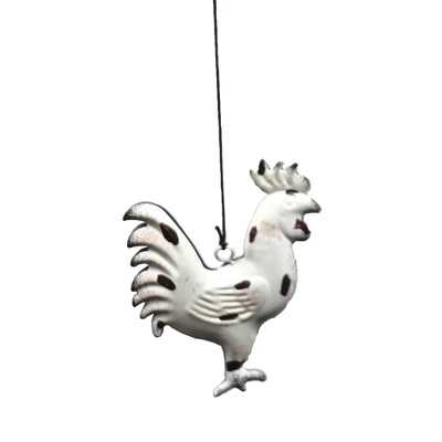 Pretty Wind Chime With A Rooster Perched On The Top. The Metal Tubes Are Strung To A Metal Ring Below The Rooster’s Base And A Distressed White Metal Rooster Is The Sail At The Bottom. The Four Metal Poles Are A Half Inch In Diameter And Range In Length Of 14.0 Inches To 18.0 Inches.. New. Measurements 43.0 In H X 4.0 In W X 8.0 In D. . No Assembly Required. Imported