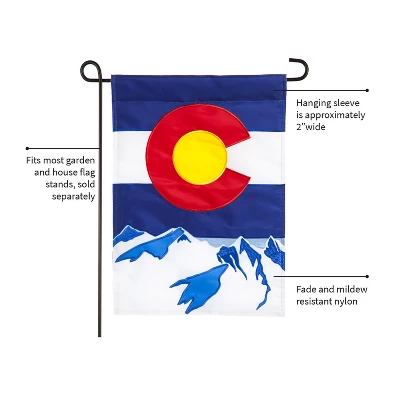 Showcase your love for Colorado with this flag. Our applique flags were first introduced more than 20 years ago, and thanks to their bold designs and top-of-the-line materials, they continue to be just as popular today. Each flag is made of strong 310 denier nylon to withstand all types of weather. We combine pieces of fade-resistant fabric with tight, detailed stitching to create a mosaic effect. The soft yet heavyweight material illuminates beautifully in sunlight.