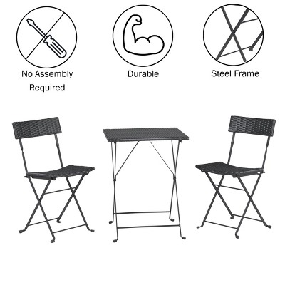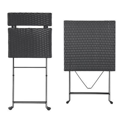 - STYLISH FUNCTION – The black rattan lends a contemporary look to this charming bistro table set. This functional seating combo features a versatile neutral design that will coordinate well with a variety of outdoor décor styles.