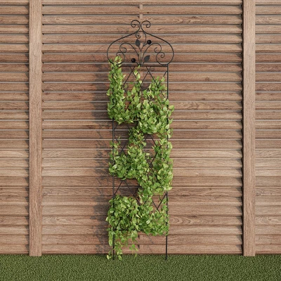 - METAL TRELLIS FOR CLIMBING PLANTS – The decorative lattice design of this metal trellis will add style and dimension to your landscaping while providing plenty of support for your climbing plants. Use this garden arch as a grape trellis or berry trellis.