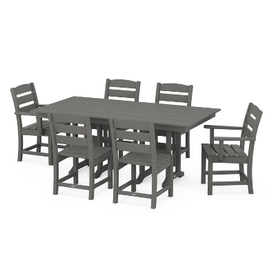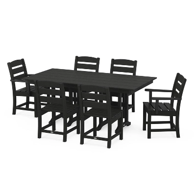 Gather family and friends around the table for an al fresco meal with the Lakeside 7-Piece Farmhouse Dining Set by POLYWOOD. The comfort factor is turned way up by the relaxing Lakeside arm and side chairs, and the spacious, easy-to-clean Lakeside table is the perfect place to show off your culinary creations in all four seasons.