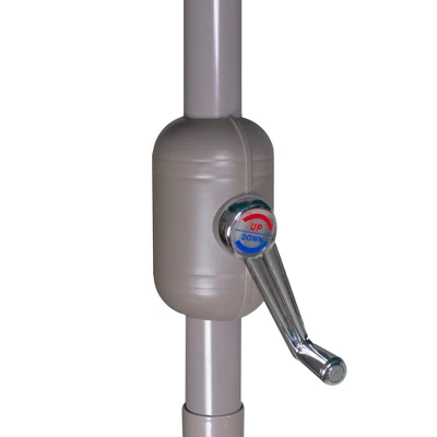 Enjoy tons of fresh air this summer without having to sit in the hot sun. Ideal for covering a 30-inch bistro style table. Features a sturdy, powder-coated aluminum frame with steel ribs, built to last a lifetime. The crank opening allows for ease of use. Features:Umbrella shape: hexagon Canopy color: blackFrame and pole color: brown Diameter of open umbrella: 7.5′ Height: 7.5′ Pole diameter: 1.5″ (38mm) Lift: hand crank 6 ribs Material(s): 160 gram polyester canopy/powder-coated aluminum pole/steel ribs Note: Umbrella only, base is not included