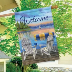 Briarwood Lane Waterfront Retreat Nautical House Flag Summer Welcome Adirondack Chairs 28″x40″