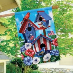 All American Birdhouse Floral House Flag Patriotic Primitive 28″ X 40″ Briarwood Lane