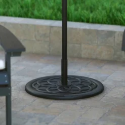 Merrick Lane 9′ Round UV Resistant Outdoor Patio Umbrella With Height Lever And 33° Push Button Tilt