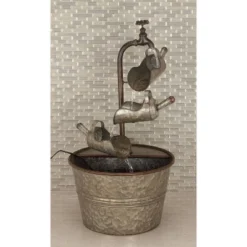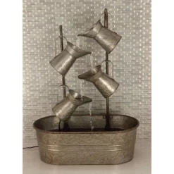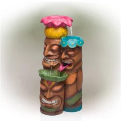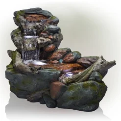 28″ Resin 3-Tier Rainforest Fountain With LED Lights Bronze – Alpine Corporation