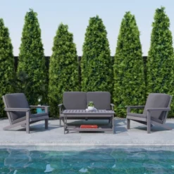 Merrick Lane All-Weather Poly Resin Wood Adirondack Style Deep Seat Patio Loveseat With Cushions