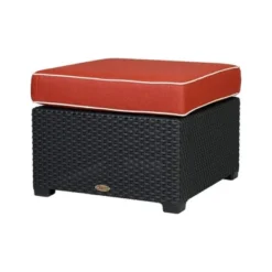 Puerta 2pk Outdoor Wicker Ottomans With Cushions – Black/Dark Gray – Christopher Knight Home