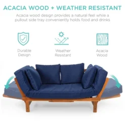 Costway Patio Convertible Sofa Daybed Solid Wood Adjustable Thick Cushion TurquoiseRed White