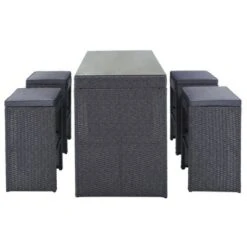 5pc Outdoor Rattan Bar Set With Stools & Cushions- Gray – WELLFOR