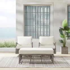 3pc Thatcher Outdoor Steel Chair & Ottoman Set Creme/Driftwood – Crosley