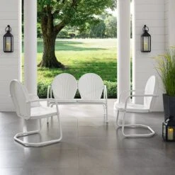 Kaplan 3pc Outdoor Sofa Set With Sofa & 2 Arm Chairs – Navy – Crosley