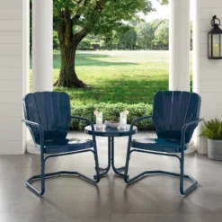 Ridgeland 4pc Outdoor Metal Conversation Set – Navy – Crosley