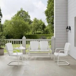 Ridgeland 4pc Outdoor Metal Conversation Set – White – Crosley
