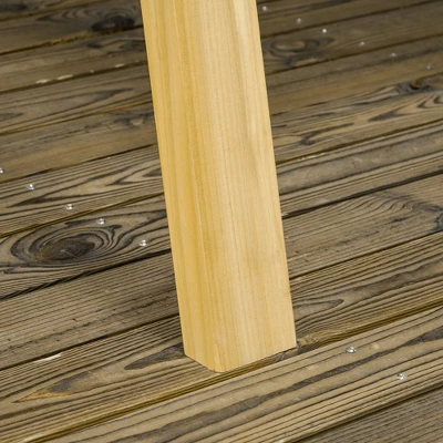 Create your own garden getaway with Outsunny. This outdoor swing seat offers a wide and spacious two-person seat so you can enjoy the fresh air and autumn breeze with a friend. Its solid fir wood frame is sealed for water resistance while accenting the natural woodgrain pattern. Offering a classic slatted design, it brings a farmhouse aesthetic that doubles as an easy-drying surface. Enjoy two tables for belongings and sit close on a loveseat-like design. Get out, get comfy, get Outsunny.