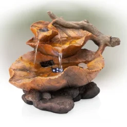 9″ Resin Indoor Tabletop Tiered Leaf Fountain With LED Lights Brown – Alpine Corporation