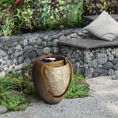 - 2-IN-1: Bring Earth’s natural elements to your backyard oasis. This water fountain and fire pit combo adds warmth and beauty to your outdoor space