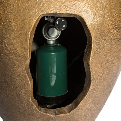 - DIMENSIONS: Fountain measures 19.5″ long, 17.75″ deep, and 22″ tall. The fire pit uses a 1 pound gas tank, not included