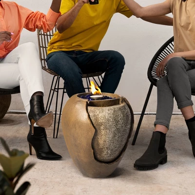 Incorporate Earth’s natural elements in your backyard oasis with Teamson Home’s Water Fountain Fire Pit. This 2-in-1 combo features water falling down the front of the exposed pot while a warm fire dances above. The fire and water fountain can be used independently from each other. The pot stands 22″ tall and 19.5″ deep and offers a peaceful and relaxing environment wherever you put it.