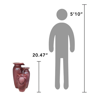 Turn your home’s outdoor area into a relaxing oasis with the Teamson Home Outdoor Cascading Jars Waterfall Fountain. This outdoor cascading fountain features tiered decorative jars for a stylish and soothing addition to your porch, backyard, or lawn. Constructed from durable polyresin with a natural look and realistic clay textures, the fountain is weatherproof, rust-resistant, and resilient. The timeless look of this outdoor fountain will bring a touch of natural beauty to your space. Relax to the sounds of the peaceful water flow as it trickles down from the top jar to the additional jars below for a peaceful escape.